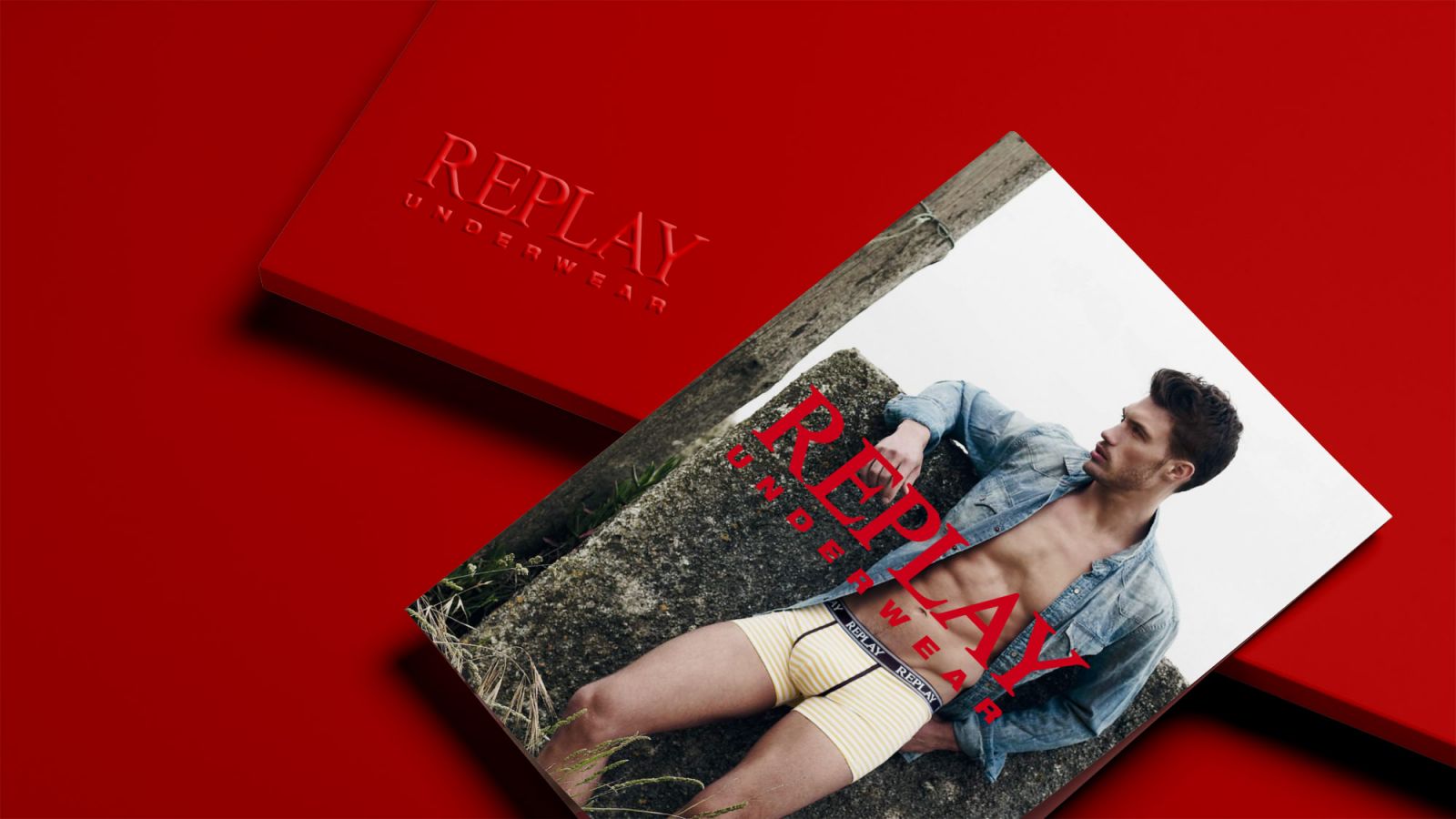 Empresa de moda masculina. Replay Underwear es la parte de moda íntima de hombre. Catálogos y pósters, colaborando con Sección 8